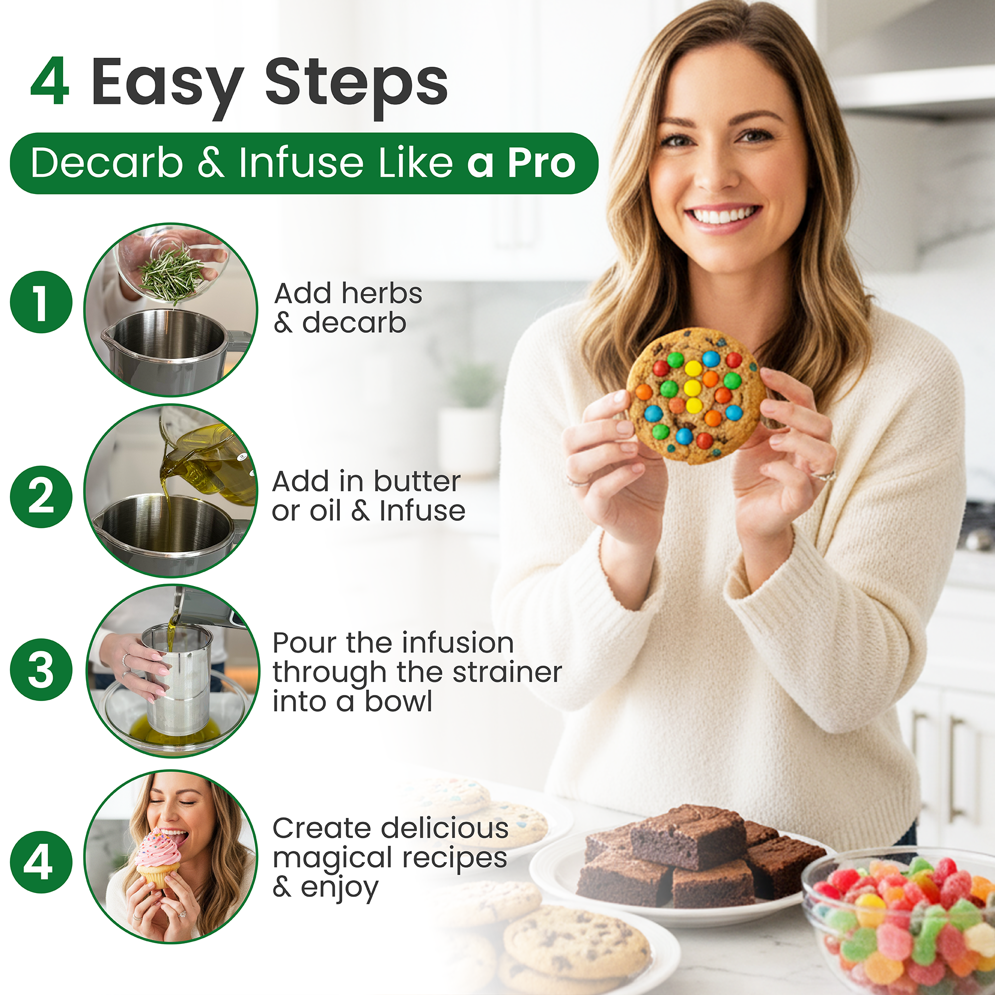Infuse your butter, oil, or tincture with perfect, magical potency every time. Say goodbye to guesswork, standing over the stove and inconsistent results. Say hello to easy, perfectly infused craft creations.